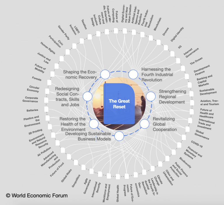 Ma oltre il piano di lettura puramente culturale e linguistico, COVID e climatismo si fondono in un piano molto più concreto ed economico, direi operativo: Il Grande Reset (The Great Reset).