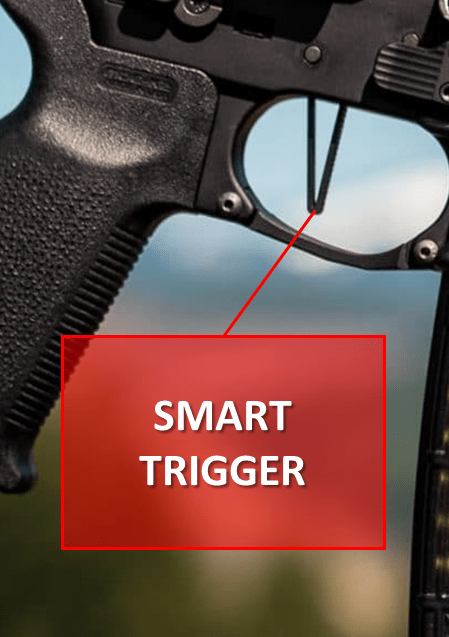 Grilletto SMART TRIGGER 4.0, dalla sensibilità senza pari. Abbinato a carrello ed otturatore da 1400 colpi al minuto, e completamente integrato con NEUROLINK, permette di scegliere le diverse modalità di fuoco semplicemente con il pensiero.